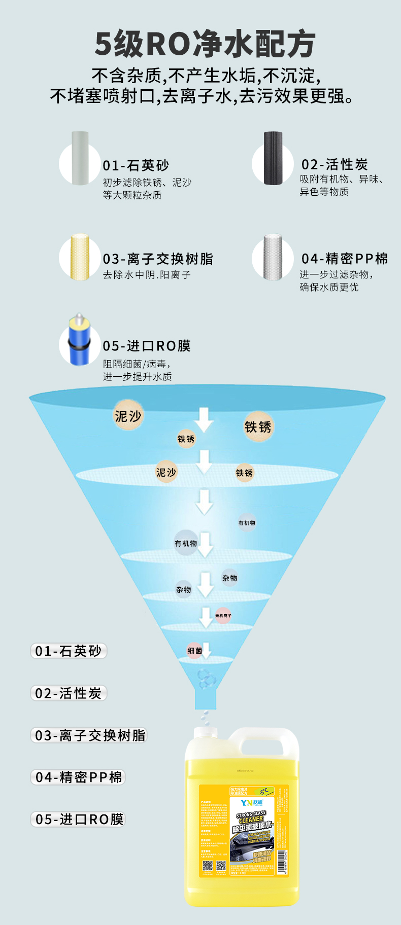 本品为水基型特效除虫渍、树粘、油膜玻璃水,专用于清洁汽车挡风玻璃、后视镜及车门窗等,能迅速分解油膜、虫胶、树粘、鸟粪等污渍,彻底清洁玻璃表面,长期保持玻璃透明晶亮,使视野更加开阔,不留水痕,不易粘灰,不伤雨刷片、玻璃边条、车漆。强力配方,使用简单。